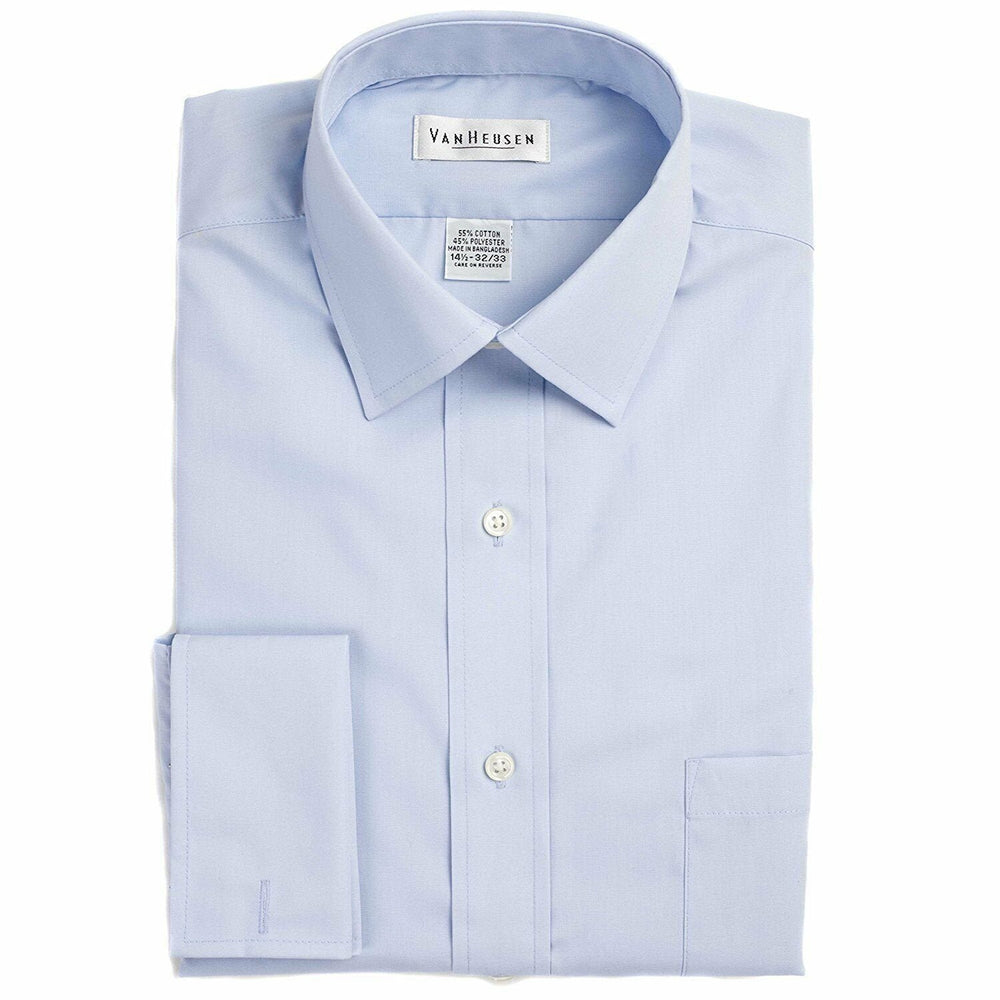 Van Heusen Men's Regular Fit Wrinkle Free Broadcloth French Cuff Solid Dress Shirt. CLEARANCE, FINAL SALE!