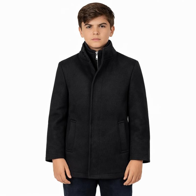 Bradley Jons Boys Classic Fit Wool Coat – 3/4 Length Dress Overcoat with Insulated Bib