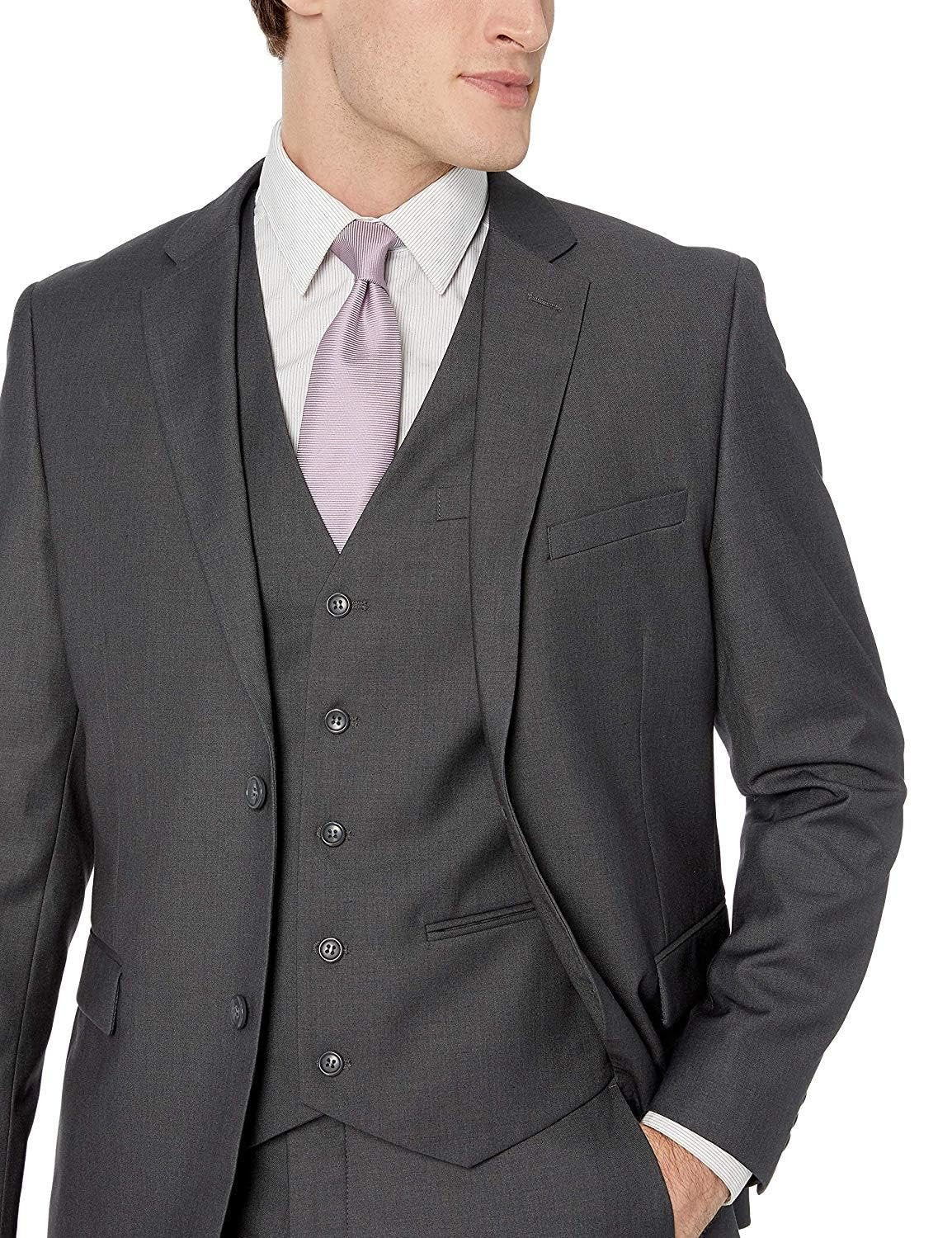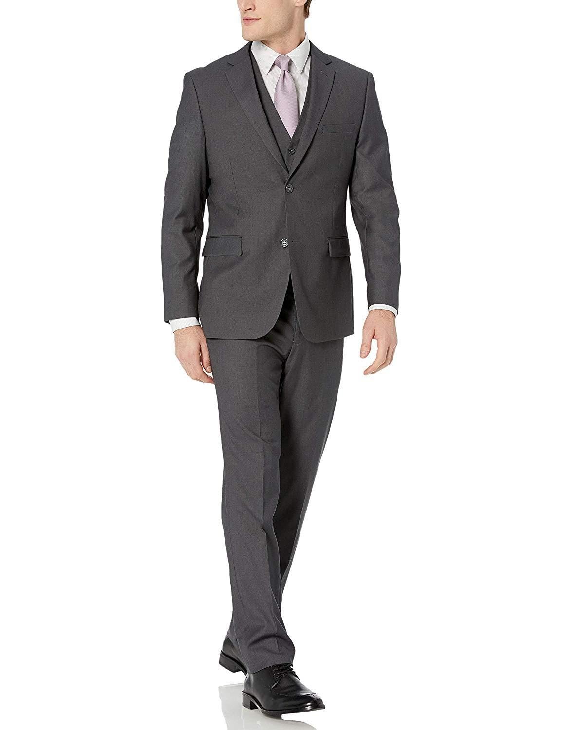 Adam Baker Men's Slim Fit 3-Piece (Jacket, Vets, Trousers) Vested Suit Set - Charcoal & Grey