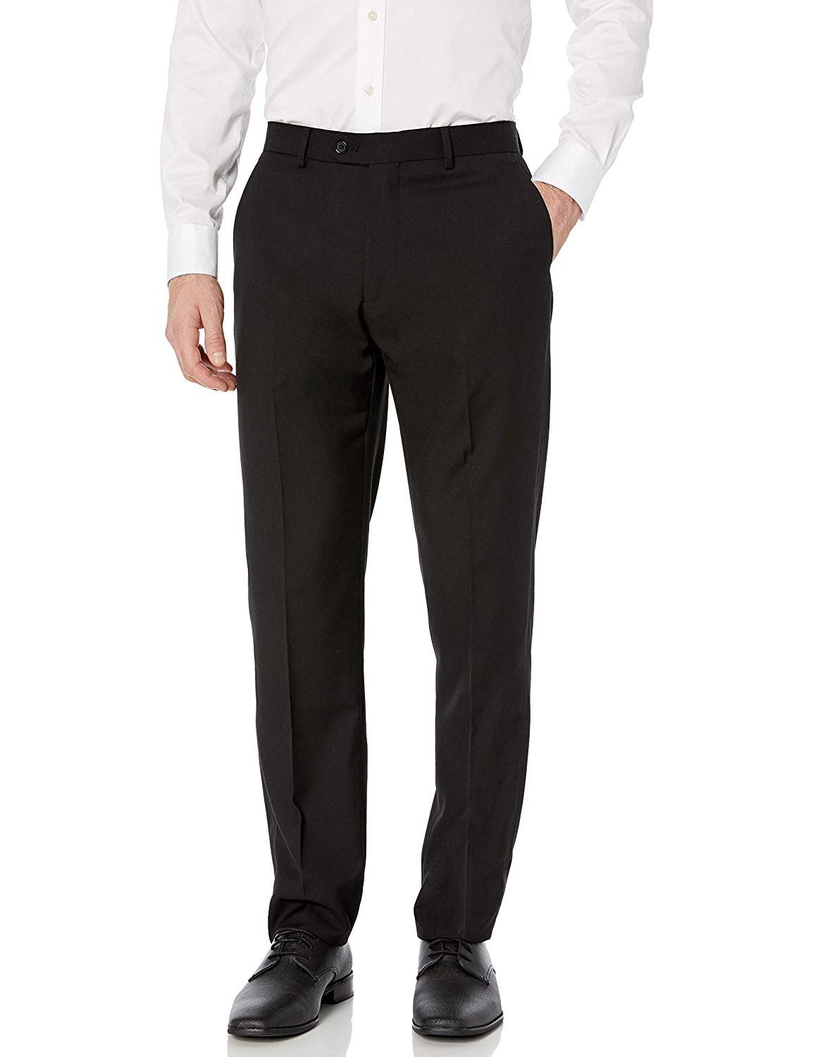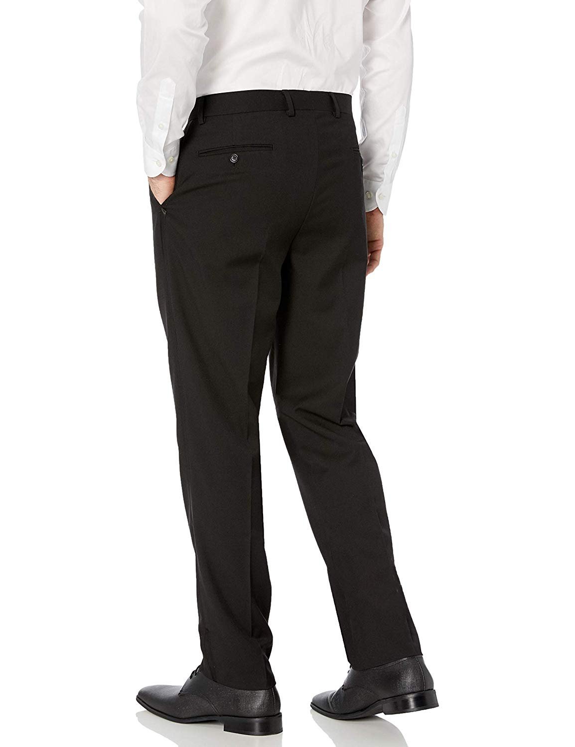 Pants: Classic Fit, Flat front, Zip Fly with Hook-and-Button Closure, Solid, Sateen stripe, button-through back pockets, Unfinished hem so you can tailor them to your exact measurements, However once hemmed, cannot be returned.
