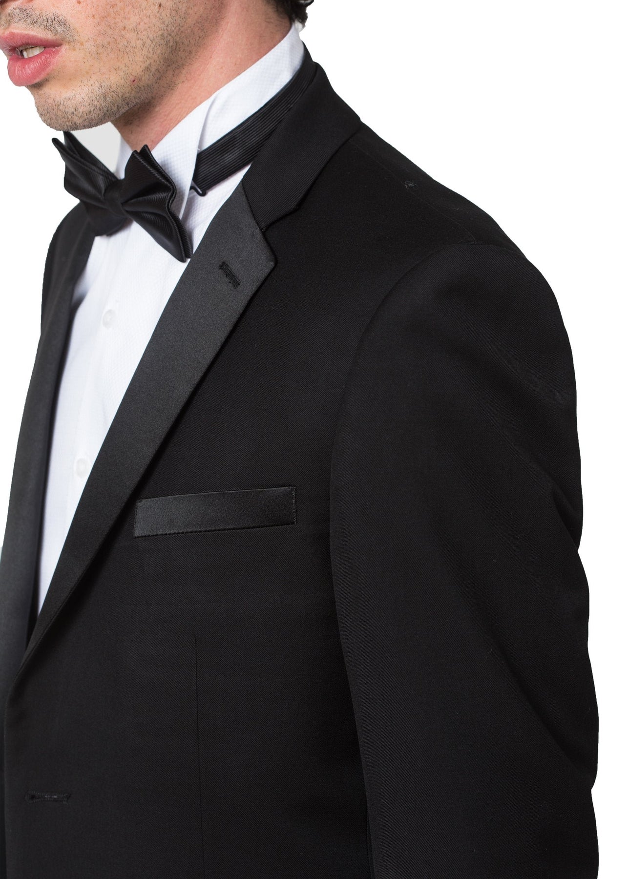 This is an exceptional deal on a very soft tuxedo with a Super 150 fabric feel. Though not made from wool, this poly/viscose tuxedo by Adam Baker has a very luxurious texture